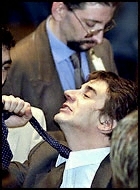 A trader gestures at the Buenos Aires stock exchange on Aug. 1, another day of dismal financial news throughout the country. (Reuters)