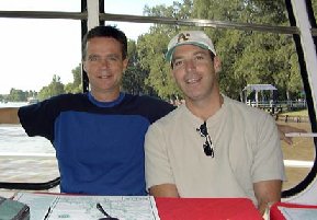 George in blue, Steve in beige George asked for a Gin and Tonic and got a huge glass of Gin. He was VERY happy!