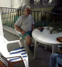 Tuesday Nov 14th – Ron and I took a nice long walk in the morning. The weather was still windy and cloudy but it was great to be outside, the air smelled great and you can never get tired of walking by the ocean. It is still spring and the town really hasn’t opened yet, most things are closed but you can still see a whirlwind of activity of people getting ready for the coming summer season. Workers are painting houses, railings, balconies, etc., gardeners are planting flowers and trimming hedges, you can tell this place is VERY busy during summer. There are also several casinos in town. Ron stops to use a rest room and I go over to a realtor that has houses for sale and rent in the window, there is a small house with 3 bedrooms and 2 bathrooms that rents for $5,700 for the month of January and $3,000 for the month of February, wow! This is something Olga told us, if you buy a place here and rent it out for 3 months in the summer, it will pay for itself for the entire year. Something else to consider. We go back and find Steve, George and Joe in the apartment. We go out for lunch but Joe stays behind because he hasn’t been that hungry since he’s not that active in the wheel chair. We find a great restaurant right on the point of the peninsula, it has a great view of the stormy weather with nice big waves crashing on the shore. We order fish and everyone has a great meal, I’m always surprised seafood isn’t bigger in Bs. As., it’s right on the ocean and yet fish isn’t big on the menus. Odd. We go back to the apartment and pick up a bottle of Run and Diet Pepsi to have a drink while we play cards, everyone thought this was a great idea! Steve had never played hearts and he ended up winning, he took my mom’s “quiet as a church mouse” strategy of not bringing attention to himself. Ron always tries to shoot the moon so usually we’re always ganging up on Ron to stop him, meanwhile, Steve is just quietly playing his cards and accumulating no points! Later, George teaches us “500” and we discover a new card game that’s lots of fun, kind of a variant on Bridge, I can hardly wait to play it with Mom and Aunt Hazel when we go to Cabo San Lucas, Mexico next February! We stay up till 2:30am but end up each winning a game so we have to “play rubber” as a tie breaker. We’re all too tired so we go to bed.