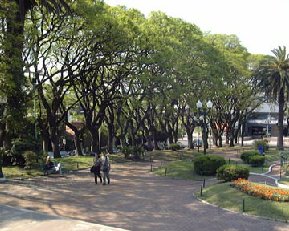 The next room has several displays, all non-inspiring or thought provoking. Oh well, it only cost a buck. We leave the museum and look for a place for lunch. Dorrega Plaza, where they have the flea market on Sundays, is now filled with tables from the restaurants bordering the square. The weather is clearing and it’s turning into a beautiful spring day so we have a wonderful lunch sitting outside in the square. We’re sitting under this huge tree and we keep seeing wisps of something that looks like cotton float by. We look up and the tree has huge clumps of this cotton stuff the size of soccer balls coming out of the branches of the tree. One is hanging directly over my plate and I hope the whole thing doesn’t come falling down at once. We leave the restaurant and go to an antique store that had something that intrigued Steve when we were there before. He had seen some Jewish metal plates that are hand created and then used to make scrolls. He said only certain priests make them and they are usually buried in a religious place after making a certain amount of impressions. He thought they might be illegally obtained since they are usually not sold, especially without the scrolls. Because of the unknown nature of how they were acquired, Steve was hesitant to buy them when we were at the antique store 1.5 weeks ago. He wanted to see them again but when we got there they had already been sold. I told him it was probably for the best, now he won’t buy them and have any guilty feelings about the purchase. I don’t think Steve bought this reasoning. I wanted to walk them down Av de Mayo from the Casa Rosada down to the Congreso Nacional (Congress Bldg), a pretty impressive building and park area. Along the way, Steve and George’s friend from San Francisco, that we met the other night in a bar, was just then walking out of a café with his friend, small world. We go inside for a café and it turns out to be the friends friend’s restaurant, sorry, didn’t catch his name. He said that there is a 36 hour general strike planned for the coming Thursday, I had read about this in the paper and wasn’t sure what it meant. He said that he was going to be closed Thursday and Friday because his store is along the avenue between the Congress building and the Casa Rosada and a lot of times the demonstrators walk between the 2 plazas. Since they are union workers who are striking against “the system”, it’s not wise to have an open business while they’re marching along, they might target your business. We think we’ll stay inside on Friday! We order 2 beers, 2 cokes and then Steve wanted to order 4 empanadas to go to take on the airplane with them. In the past 2 weeks, Steve had become a BIG empanada fan. When we got ready to leave, the owner wouldn’t let us pay. I tried to insist but he wouldn’t budge so I thanked him for his hospitality. We get home after a very long walk. Steve and George barely have time to pack and shower before their taxi comes to take them to the airport. Lots of hugs go around, we’ve had a great time having them here.