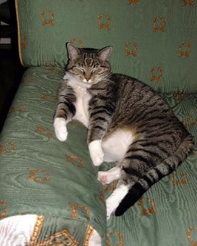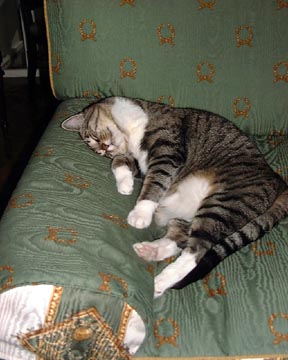 This doesn't look too comfortable but Loretta doesn't seem to mind!