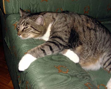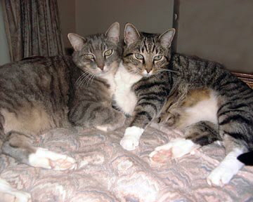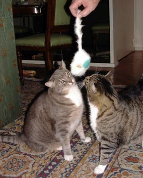 I promised Elis I would put some cat pictures out here for her. Elis took care of our cats for us when we went on vacation and she grew fond of them. Here they are enjoying their new home and new cat toys!
