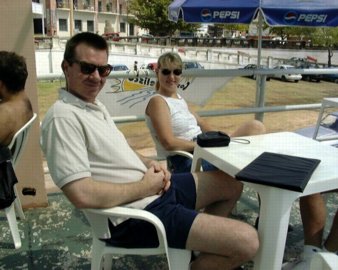 Now that we had our tickets we headed off to find a place to stay. We stopped at a traditional hotel and they only had one room with 3 beds in it, not a great arrangement. We then went to find the hotel Colleen received an advertisement for at the roadside stop, it took us awhile to find it and as we were looking for it I was thinking that Colleen and Gary are much more adventurous then we are. We were going down several dirt roads in a not too appealing area of town. Colleen and Gary were joking that the advertisement was probably a trap to lead us to a dead end alley where we would then be robbed. Crazy Australian humor! We finally found the hotel and it turned out to be very nice, Colleen and Ron went in to check out the rooms, came out and after a short discussion we decided to take it. We plopped our bags into the room, grabbed some beers and then walked down to the river to enjoy the beers and relax.