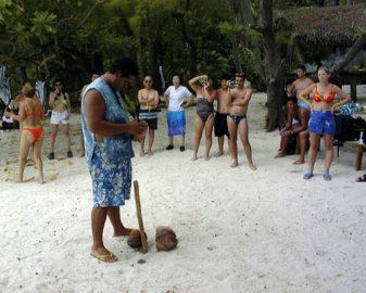 Bruno teaching us how to shuck and crack open a coconut!