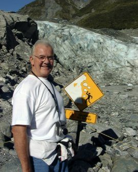 See the sign, it says GO NO FURTHER,DANGER!!, and what did Ron want to do? Climb over the fence and scale the glacier!