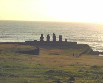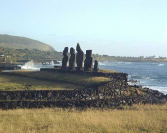 The statues face inland to where the villagers lived to protect and watch over them.