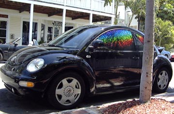 This VW had rainbow tinted windows dazzled in he light, very cool!