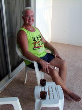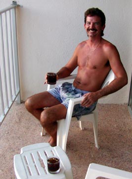 A drink on our balcony, watching the sunset