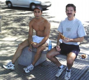 Wednesday December 25th, 2002 – Alberto asked if we wanted to go on a bike ride to the ecological preserve that is downtown. It is a HUGE stretch of land that was set aside as an ecological preserve, it is kind of unique in that it is right downtown next to the riverside by the financial district. There has been talk for years that developers were going to bulldoze it to build new apartments and businesses as the land is very valuable because of where it is located. I have heard about the ecological preserve but had never visited it. We got our bikes out and headed to the preserve. It was a glorious summer day, not to hot, with beautiful blue skies. The sky here can be incredibly blue. There were lots of families out, lots of people in shorts, strolling, sitting under trees. Unfortunately the park was closed, guess they get Xmas off too, but we were still able to bike along the reserve. Alberto suggested we stop for a “chori-pan”, there are MANY roadside stands that setup a barbeque and start grilling foods. A “chori-pan” is a sandwich made from a grilled chorizo sausage and a piece of bread (pan) that they also toast on the grill. That’s it, no sautéed onions, no ketchup, nothing but bread and sausage, but you can’t believe how good they are!
