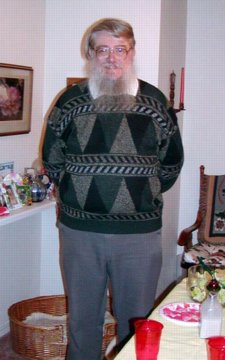 Tuesday February 4th, 2003 – My sister Cindy sent me a hilarious picture of Ron from a few years back. It was taken at Ron’s birthday party and mom had bought him a leather bow tie and my sister Cindy had bought him a loud “vacation” outfit. It’s common during our family birthdays to say, “Model, model!” when you get a new outfit and then you go try it on. This was the result! I wonder whatever happened to that outfit?