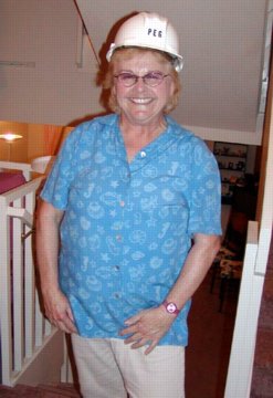 Peggy's hard hat is for her duties on Peggy in her "Pete" hat, this cracked me up! the gardening committee