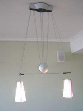 Our cool dining room light, it can be easily moved up and down on the pulley