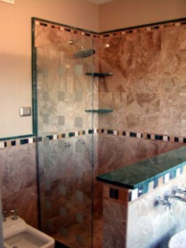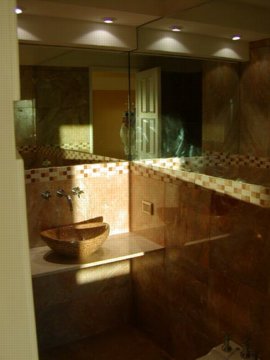 "MY" open shower, I always wanted an open shower and this has views from the 19th floor In front of the shower is a 1/2 height wall that has the sinks then windows beyond.