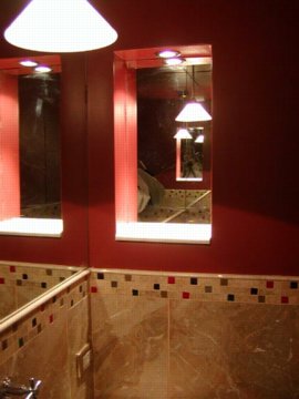 Guest reception Toilet, the red color was hard to get right, took many tries by the painter