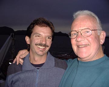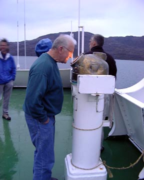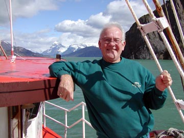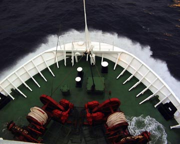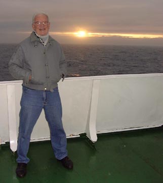 Tuesday December 23rd, 2003 - In order to round a huge peninsula where the fiords did not continue through, we had to enter the open ocean around 4:00 PM, and we didn't re-enter the fiords until the next morning. During this time the ship rocked and rolled considerably. That night at dinner fully 2/3rds of the 300 passengers failed to show up for dinner. Not to miss out on a meal, Ron and I were there with hardy appetites.