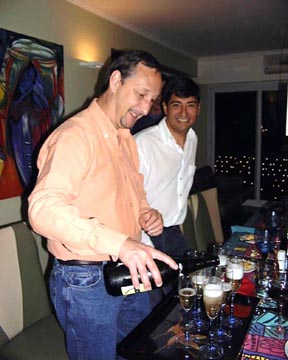 Eduardo pours champagne with Miguel