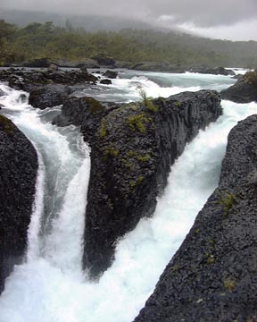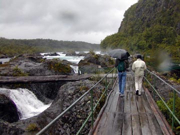 We took an all day excursion with Pía to the Petrohué National Park and saw some magnificent falls there. It was a wind driven rainy day which Pía said is typical, so it was really difficult to keep dry. Pía said that’s why people who live here don't even have umbrellas because the wind just blows them to pieces. Pía was wearing a hooded rain coat which seemed to work much more effectively then trying to control my umbrella. She just sighed and said, “I love where I live, but I just can’t stand it here!”