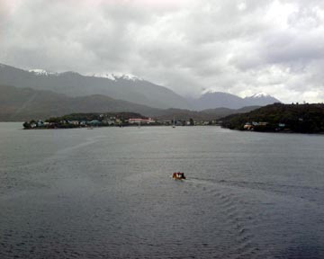 Wednesday December 24th, 2003 – There was a lecture about a native Chilean people that had only been discovered in the 1880s. When they were discovered they were naked and would dive in the freezing cold waters for their food. Of course the well meaning missionaries made them put on clothes which stayed wet on their skin, causing all sorts of illnesses and nearly wiping them all out. There is still a village of about 200 inhabitants and the cruise ship drops off supplies weekly to them. The boats come out to the ship and fill up on supplies.