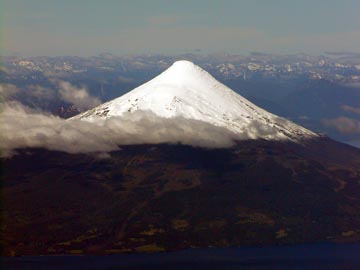 Our plane made a stop in Puerto Montt to pick up more passengers before going onto Santiago, as the plane took off the majestic volcano Osorno was visible and Ron snapped a pic from the plane.