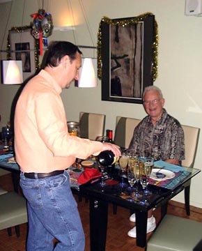 Friday December 5th , 2003 – Russell invited us over for a wonderful dinner. He has a woman who comes over to his house once a week and makes a bunch of meals for him ahead of time, then puts everything in Tupperware in the fridge for him. Russell swears by her. She had come over earlier in the day and had prepared everything, then Russell could sit back and enjoy his dinner party and not be running around. I REALLY need to try that sometime, Russell looked so calm and happy, able to enjoy his dinner party, chatting with everyone. It was a wonderful dinner!