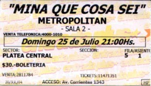 Sunday July 25th, 2004 – A friend told us of a musical review called “Mina”. I asked my friend who Mina was and he clutched his heart like he was going to have a heart attack and said, “You don’t know who Mina is???” Apparently Mina is a very famous Italian singer from the 60s and 70s and a real icon here.