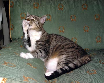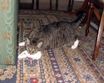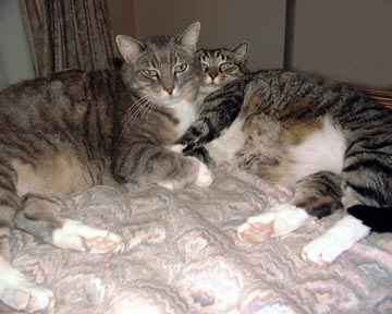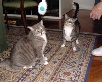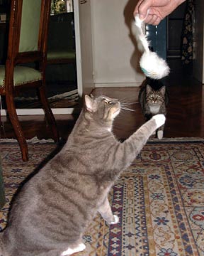 I promised Elis I would put some cat pictures out here for her. Elis took care of our cats for us when we went on vacation and she grew fond of them. Here they are enjoying their new home and new cat toys!
