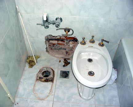 Ron was trying to fix a leaking faucet in the bathroom when he discovered that the shut off valves to turn the water off were old, corroded and not working properly. Unlike in the USA where the valves are outside of the wall, the valves here are buried within the wall. There was no way we could think of to fix this and called Ignacio to ask him what we should do. The apartment building has an association and since the valves were inside the wall the association would take care of paying the plumbers to fix the problem. The plumbers came over and started chiseling out the wall to get at the valves, making a huge racket. Seems most apartments are constructed of all concrete and brick, makes for a very quiet apartment, but makes it hell when you have to get into the walls to fix something.