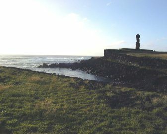 The statues face inland to where the villagers lived to protect and watch over them.