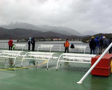 Monday December 22nd, 2003 – In the afternoon we boarded the "Magallanes", a cargo ferry which had been converted to carry 300 passengers, as well as the many huge semis, and all sorts of vehicles. At the orientation before boarding the vessel they mentioned 3 times about being drunk on ship would not be tolerated, I thought this very odd as most Argentines don’t drink hard liquor at all, but then I noticed most of the passengers were European and many were Germans, it didn’t look like a rowdy bunch of kids, but I guess they mentioned it for a reason.