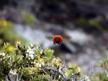 Something buzzed my head that sounded like a hummingbird but I couldn’t see what it was, then I saw that it was the biggest bumble bee I have ever seen in my life. Ron snapped a pic as it lazily buzzed around looking for nectar.