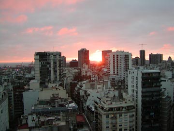 Monday June 21st, 2004 – Ron took a picture of the sunrise on our winter solstice, from our terrific vantage point in our apartment, it’s fun to see the sun slowly creeping back and forth every morning and evening across the horizon, it really varies by a lot between the summer and winter solstices.