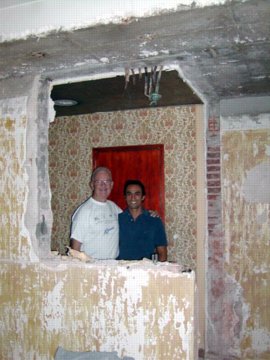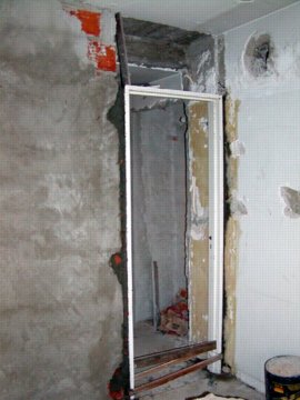 Part of the foyer wall has been removed. We wanted to remove it entirely but there were pipes running through part of the wall.