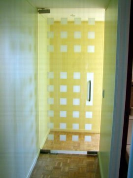 I don't like doors so the architects suggested a glass door between the living space and bedroom
